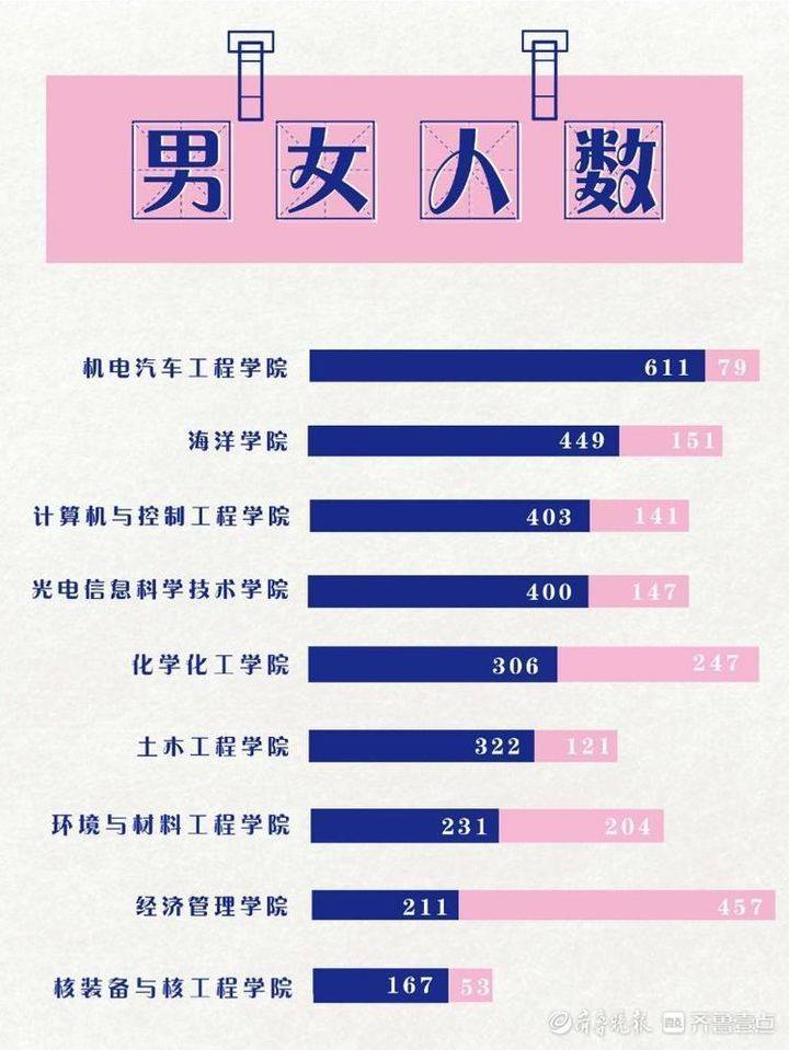 據悉,目前煙大2020級本科生已報到入學,在2020級7423位本科生萌新中男生3975人,女生3448人,男女比例接近1.15:1。但由于各學院專業性質不同,男女生人數差異較大。其中,在眾多學院里機電汽車工程學院,男女比例高達7.73:1;與此形成鮮明對比的是國際教育交流學院,男女比例低至1:11.5。