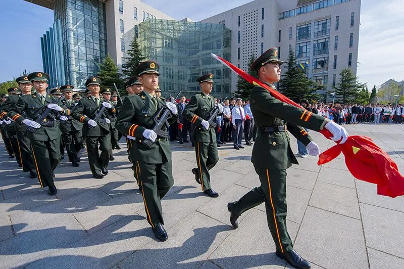 10月1日上午9時,鏗鏘有力的腳步聲在廣場上響起,在場師生屏氣凝神把目光投向國旗護衛隊走來的方向。由30名在校生組成的國旗護衛隊挺拔威武,邁著整齊的步伐,護衛國旗走向升旗臺。伴隨著威武雄壯的《義勇軍進行曲》,鮮紅的五星紅旗冉冉升起,在場師生齊唱國歌,肅立行注目禮,共同感受這一莊重而自豪的時刻。