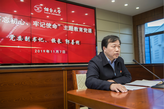 11月7日下午,校長郭善利在育秀大樓316會議室講授了“不忘初心、牢記使命”主題教育專題黨課,機關各部處室、各直屬單位主要負責人以及各學院(部)院長(主任)參加了學習。