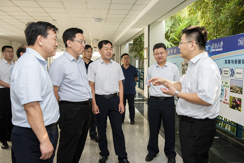 走訪慰問期間,陳飛一行參觀了煙臺大學校史展廳、藥學院實驗室、煤制甲醇半實物仿真實驗室和工程實訓中心實訓室。