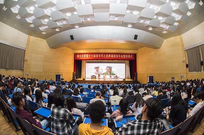 本屆讀書節在以往經典賞析、讀書交流會、“煙大讀書之星”和“書香宿舍”等活動的基礎上,增加了春季書展、舊書交換、英文經典誦讀評選等活動,閉幕式前的經典誦讀音樂會更是得到了廣大師生的一致好評。經典誦讀音樂會分為古韻經典、情韻經典、風韻經典三個篇章。同學們的誦讀聲情并茂,扣人心弦,現場觀眾仿佛走進了書中,時而潸然淚下,時而同仇敵愾,時而沉靜深思,讀書的魅力在那一刻得到了綻放。