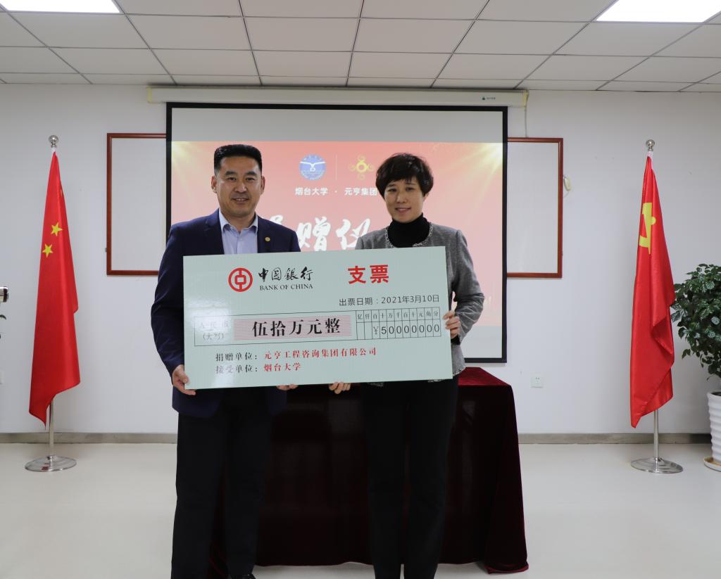 郭善利代表學校對元亨集團的無私捐贈表示感謝,并介紹了學校建設發展情況,重點介紹了近年來學校在高水平大學建設、服務地方經濟社會發展方面的舉措,尤其是學校與煙臺經濟技術開發區在人才培養、科學研究、學科專業建設等方面的密切合作,希望通過此次雙方合作框架協議的簽署,進一步提升學校工程管理類人才培養質量,為更好地服務區域經濟建設注入新的動能。