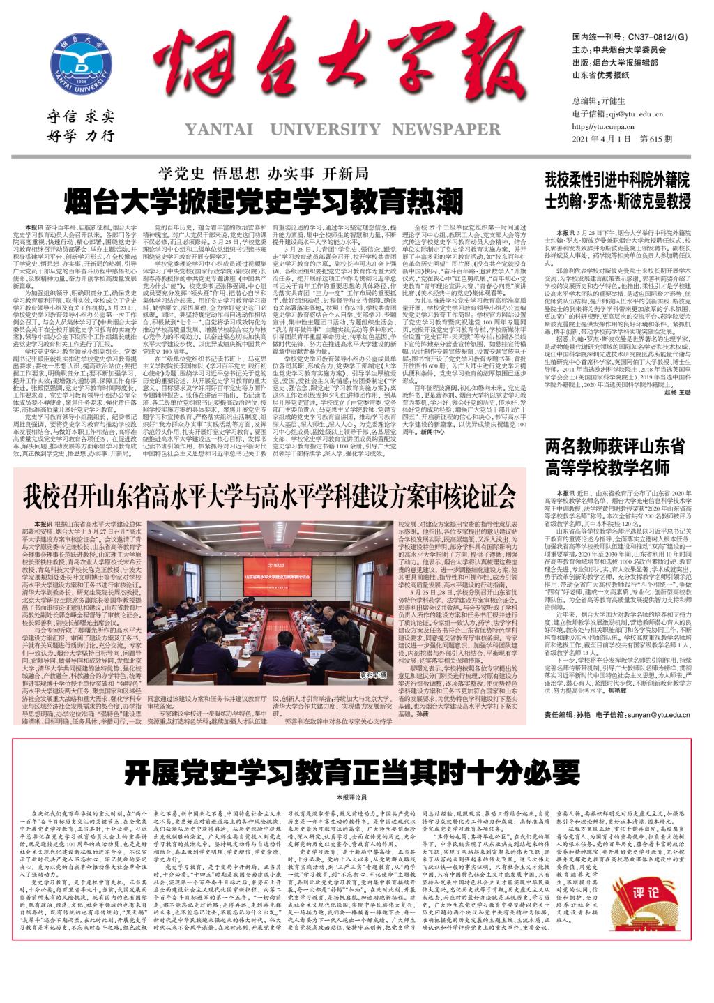 黨史學(xué)習(xí)教育,是于新局中攀高峰,正當(dāng)其時(shí),十分必要。黨的十八大以來,從黨的群眾路線教育實(shí)踐活動(dòng),到“三嚴(yán)三實(shí)”專題教育,從“兩學(xué)一做”學(xué)習(xí)教育,到“不忘初心、牢記使命”主題教育,再到此次黨史學(xué)習(xí)教育,黨內(nèi)集中教育接續(xù)開展,每一次都是“補(bǔ)鈣”“加油”。在此時(shí)此刻,開展黨史學(xué)習(xí)教育,是揚(yáng)帆啟航,加速助跑新征程。建成社會(huì)主義現(xiàn)代化強(qiáng)國,實(shí)現(xiàn)中華民族偉大復(fù)興,是一場(chǎng)接力跑,我們要一棒接著一棒跑下去,每一代人都要為下一代人跑出一個(gè)好成績(jī)。廣大師生要自覺提高政治站位,堅(jiān)持守正創(chuàng)新,把黨史學(xué)習(xí)同總結(jié)經(jīng)驗(yàn)、觀照現(xiàn)實(shí)、推動(dòng)工作結(jié)合起來,自覺將學(xué)習(xí)成效轉(zhuǎn)化為工作動(dòng)力和成效,高標(biāo)準(zhǔn)高質(zhì)量完成黨史學(xué)習(xí)教育各項(xiàng)任務(wù)。