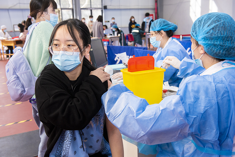 在留觀區,談及接種疫苗的感受,校團委王雪峰老師說:“非常輕松,沒有任何感覺!希望疫情早日過去,中國加油!”經濟管理學院郭凡同學表示,接種新冠疫苗既是為個人健康,也是對社會負責,我們每個人都有義務做到“應接盡接”,在感受國家和學校關懷的同時,也為學校、社會盡一份責任。土木工程學院張偉強同學說:“學校組織新冠疫苗接種,我積極報名參加,接種完之后沒有任何不良反應,感覺很安心。”本學期在外實習的人文學院趙曉雨同學也積極響應國家號召在實習地進行了疫苗接種,她說:“響應國家和學校號召接種疫苗,現在我更心安了,能夠感受到祖國給予我們的力量。”