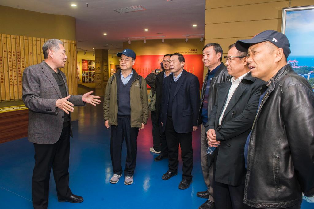 張偉代表學校對康克軍一行表示熱烈歡迎,從辦學歷史、學科建設等方面介紹了學校歷史沿革和發展現狀,并陪同客人到承先圖書館“永不磨滅的印記——北京大學、清華大學支援煙臺大學建設歷程”展區重溫兩校援建煙臺大學的歷史。宋中民帶領大家參觀校史館、逸夫圖書館、千米文化藝術長廊,向客人介紹了學校人才培養的措施效果以及開發區科教園區建設情況。