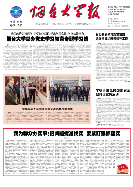 江山就是人民,人民就是江山!在煙大這艘航船乘風破浪的新征程上,煙大人正肩負著博士授權單位突破、建設高水平大學的歷史重任。只有把學黨史的“觸動”變為辦實事的“行動”,從黨史中汲取豐厚養料,在事業中激揚實干精神,才能百尺竿頭、更進一步。要堅信,有了嚴肅對待、緊盯不放、不懈努力的韌勁兒,就一定能夠把煙臺大學建設發展得更好更快!