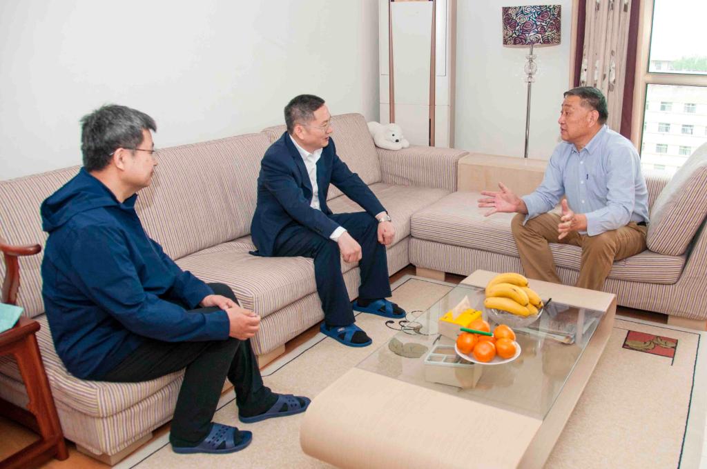 在溫俊峰院士家里,張偉、段培永親切地詢問他的身體健康、生活等有關情況,衷心感謝他為學校事業發展作出的重要貢獻,親切叮囑他一定要保重身體。