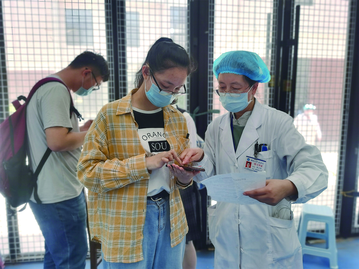 哪里有困難,哪里就有共產黨員的身影。校醫院醫療主任王淑珍作為一名老黨員,一直堅守在疫情防控這場戰役中,她說:“自疫情暴發以來,我們舍小家、顧大家,通過平日研學黨史,更深知我們黨今天的成果來之不易,我們會將學習黨史的成效落實在日常工作中,積極做好本職工作,向建黨100周年獻禮。”談及如何統籌教職工體檢、畢業生體檢和疫苗接種工作時,她說:“針對教職工體檢工作,特別是行動不便的退休人員,我們會上門進行宣傳、體檢,讓他們感受到學校的關愛;針對5月24日-5月30日的畢業生體檢工作,我們每天1100余人次的工作量不退縮,對待有特殊情況的同學,開設綠色通道;針對疫苗接種工作,我們更是積極響應部署,完成場地布局、設施設備到位、通道設置、人員培訓,保障工作有序運轉。”