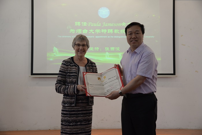 5月30日上午,生命科學學院于院館317會議室舉辦聘任Paula Jameson女士為我校特聘教授儀式。校長郭善利、生命科學學院黨總支書記出席,儀式由煙臺大學國際合作交流處處長主持。學院部分老師及學生參加。