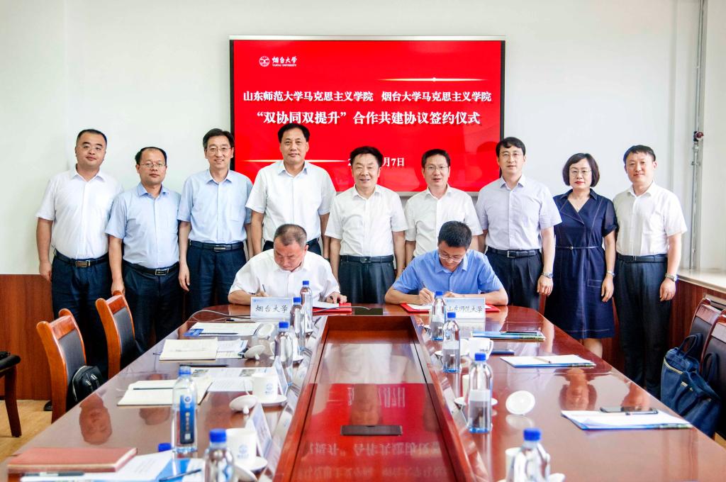 煙臺大學馬克思主義學院院長李國棟、山東師范大學馬克思主義學院院長王增福代表雙方簽署合作共建協議。