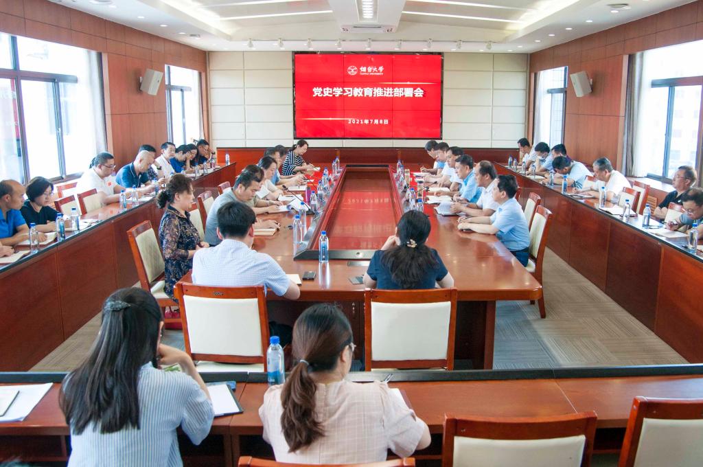 【本站訊】7月8日上午,煙臺大學召開黨史學習教育推進部署會,全面梳理學校黨史學習教育第一階段開展情況,交流工作、總結經驗、查找問題,明確下一步重點工作任務,進一步推動黨史學習教育走深走實。學校黨史學習教育領導小組副組長、黨委副書記張殿臣出席會議并講話,黨史學習教育領導小組辦公室成員單位負責人、各指導組組長及各二級單位黨組織書記參加會議。會議由學校黨史學習教育領導小組副組長、紀委書記周勝良主持。