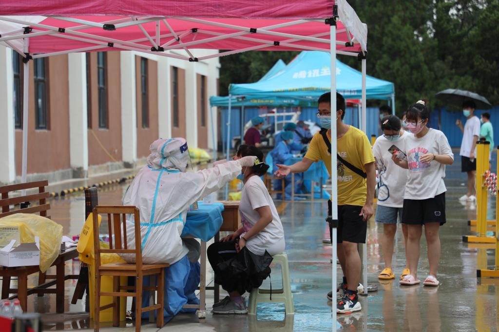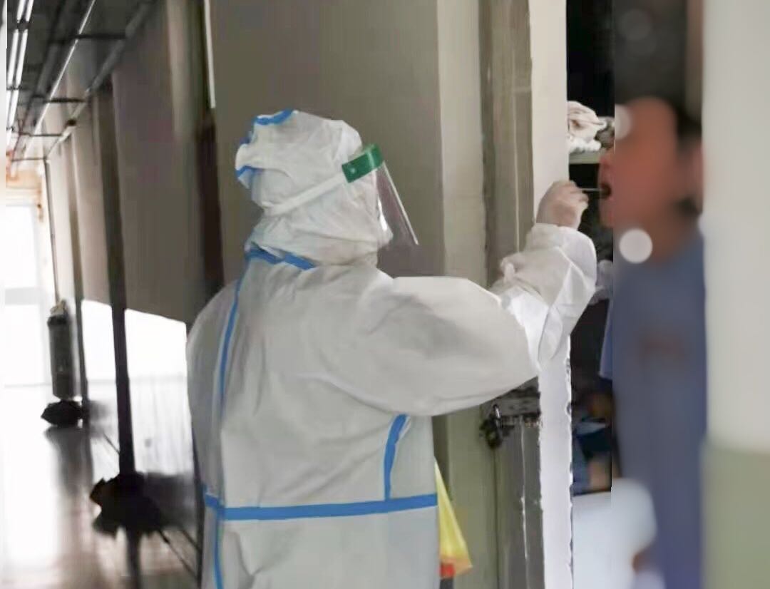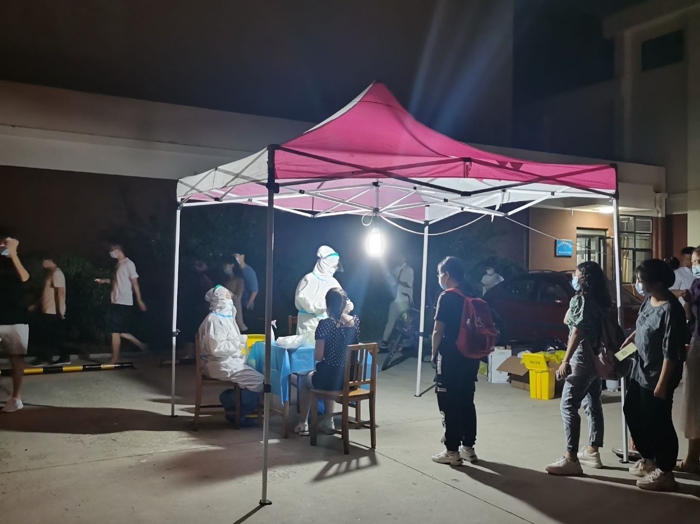 抗疫集結號也是戰斗沖鋒號。7月31日接到上級通知后,校醫院第一時間召集全體員工返回工作崗位,并立即部署核酸檢測等工作,全員保持24小時通訊暢通,保證隨叫隨到。8月2日、5日,校醫院醫護人員面向校內暑期留校學生、教職工及其家屬、臨時用工人員、校內家屬區租戶開展了兩輪全員核酸檢測采樣工作。炎炎夏日,醫務人員身穿密不透風的防護服,戴防護鏡和口罩,頭上的汗順著臉頰往下淌。截至8月5日,校醫院共完成兩輪共16050人次核酸檢測采樣,其中教職工6490人次、學生4530人次,為構筑師生健康安全屏障起到積極作用。