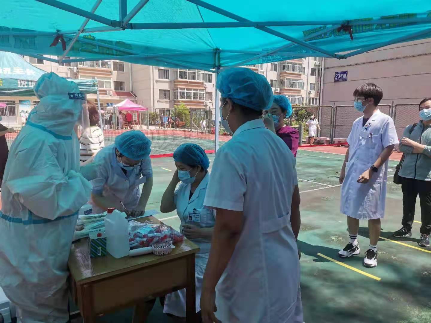 連日來,校醫院全體員工全天候奮戰在疫情防控一線,與相關職能部門工作人員一起,用堅守與奉獻為煙大師生健康安全保駕護航。這其中,有在多個采集點輪流巡視,隨時處理突發預警信息、調配相關物資的院長曲增欣、副院長丁洪新、醫療主任王淑珍;有負責將采集樣本送至煙臺市疾控中心進行檢測,每次采集結束便立刻出發的醫生段家麟;有家中孩子較小卻舍小家為大家、全身心投入到疫情防控保衛戰中的護士長謝艷妮、護士曹麗燕、檢驗科醫生于巧;有身患高血壓和糖尿病,不顧身體不適依舊堅守核酸檢測崗位的護士韓林;有主動請纓和年輕醫生一起全力做好留觀區和居家隔離人員的醫療保障工作的50多歲的醫生王麗華、譚青渠;有每隔一個小時對每個采集點的區域進行消毒,工作結束后還要對所有采集點進行徹底消毒的徐香琴、尹花薈……