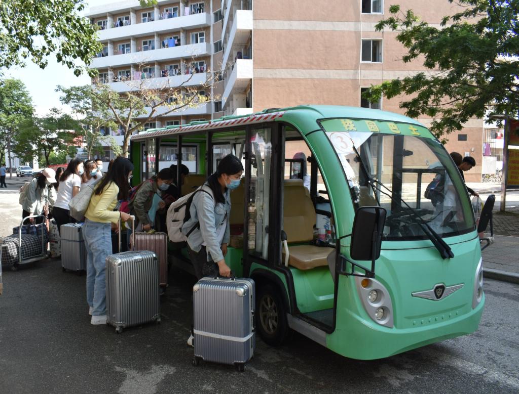 迎新現(xiàn)場(chǎng)隨處可見暖心之舉。學(xué)校為新生免費(fèi)安排校園電瓶車——“小綠車”,幫助新生運(yùn)送行李,從報(bào)到地點(diǎn)到各宿舍樓,為新生打造最便捷的“綠色”通道?!靶欣畎徇\(yùn)有綠色巴士很方便,煙大的老師和同學(xué)都很熱情,讓我感到很踏實(shí)、很溫馨。”藥學(xué)院研究生楊月說。生命科學(xué)學(xué)院研究生志愿者李志偉早上七點(diǎn)就到達(dá)迎新地點(diǎn),與其他志愿者一起替新生答疑解惑、幫助新生搬運(yùn)行李?!白鳛橐幻麩煷笕?,希望能盡自己的一份綿薄之力,讓新生感受到大家庭的溫暖?!崩钪緜フf。