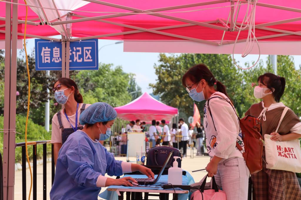 為保障新生入學(xué)安全有序,學(xué)校設(shè)立3個(gè)安全點(diǎn)。在新生進(jìn)入報(bào)到區(qū)域前設(shè)有臨時(shí)流轉(zhuǎn)區(qū),為偶然出現(xiàn)體溫異常的新生提供臨時(shí)留觀處所及必要的醫(yī)療保障。省外新生及近14天內(nèi)出省的省內(nèi)新生須提供有效的核酸檢測(cè)陰性證明,并進(jìn)行核酸采樣1次。在新生報(bào)到處,校醫(yī)院安排專(zhuān)人為同學(xué)們提供醫(yī)保咨詢并宣傳相關(guān)疾病預(yù)防知識(shí),定時(shí)對(duì)迎新場(chǎng)地進(jìn)行消毒。
