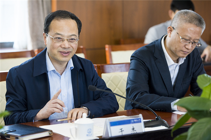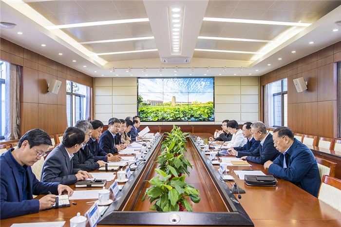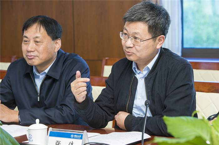 考察藥學(xué)院實(shí)驗(yàn)室后,于杰一行與校領(lǐng)導(dǎo)及相關(guān)部門負(fù)責(zé)人進(jìn)行座談交流。