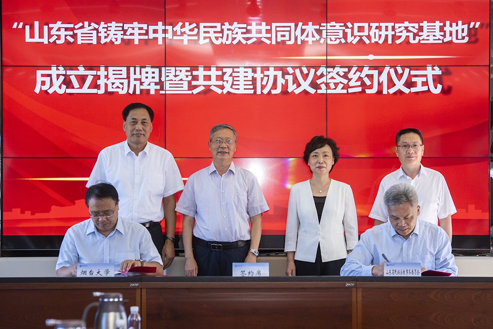 【本站訊】9月8日,山東省鑄牢中華民族共同體意識研究基地成立揭牌暨共建協議簽約儀式在煙臺大學舉行。山東省民族宗教事務委員會主任曹金萍與煙臺大學黨委書記張殿臣共同為研究基地揭牌。省民族宗教事務委員會副主任馬輝宣讀《山東省民族宗教事務委員會關于同意在煙臺大學成立“山東省鑄牢中華民族共同體意識研究基地”的批復》,并與煙臺大學副校長畢可志共同簽署共建協議,煙臺大學校長段培永主持成立暨簽約儀式。