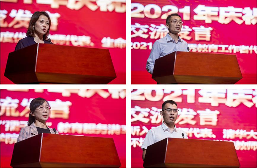 在交流發(fā)言環(huán)節(jié),2021年度煙臺大學優(yōu)秀教師代表、生命科學學院教授孫利芹分享了自己對新時代“好老師”的理解與感悟,表示將以精湛的業(yè)務水平和不斷追求卓越的創(chuàng)新動力做學生人生路上的領路人。優(yōu)秀教育工作者代表、教務處招生辦公室主任王偉說道,將時刻牢記教育初心,風雨兼程,以最樸素的情感踐行一名教育工作者的使命和擔當。在教育服務崗位工作滿30年教師代表、體育學院副教授姜麗表示將以更加飽滿的熱情,發(fā)揚“更高、更快、更強、更團結”的奧林匹克精神,努力工作和學習,為學校培養(yǎng)更多更好的人才貢獻力量。新入職教師代表、清華大學博士、環(huán)境與材料工程學院劉文寶表示將努力在教書育人和科研工作中不斷探索,為高水平大學建設作出青年教師應有的貢獻。