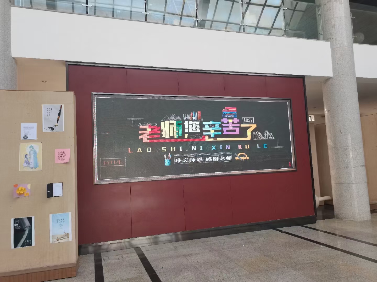 除此之外,學(xué)校還在西南門草坪、升騰、三元湖南等位置布設(shè)了教師節(jié)問候語,在各教學(xué)樓、辦公樓放置了精心設(shè)計的“老師,您辛苦了”“老師,衷心感謝您”的立式海報,在校園主要道路懸掛了慶祝教師節(jié)的主題橫幅、豎幅,各學(xué)院、校門口、圖書館、餐廳的電子屏,校園網(wǎng)主頁醒目的慶祝教師節(jié)廣告……校園里處處洋溢著教師節(jié)的暖心氣氛。