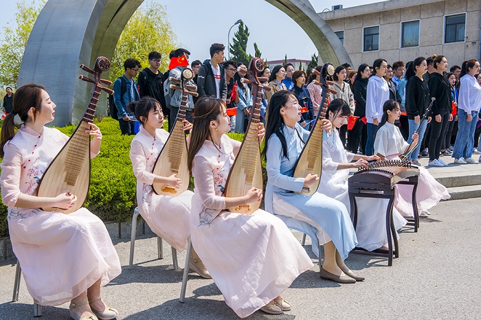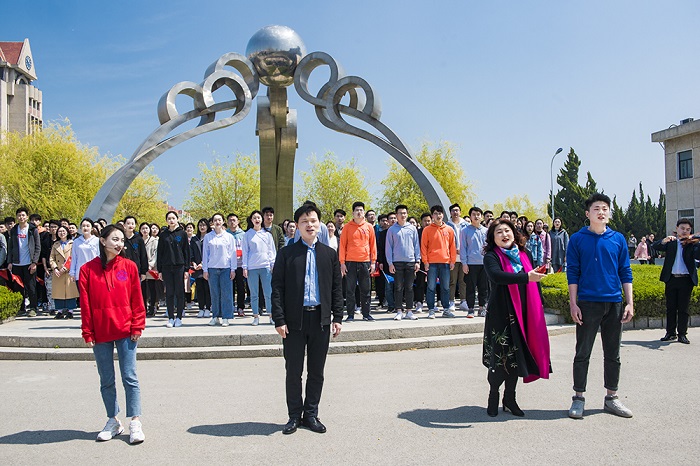 此次快閃活動(dòng)的主題曲《我和我的祖國(guó)》融合了古箏、二胡、琵琶等民樂(lè)元素以及小提琴、電吉他等電音元素,既體現(xiàn)了中華傳統(tǒng)文化的獨(dú)特魅力,又體現(xiàn)了中西方文化的交融。青春活力的煙大師生揮舞著國(guó)旗和校旗,用歌聲憧憬未來(lái),傾訴對(duì)祖國(guó)的熱愛(ài)。活動(dòng)現(xiàn)場(chǎng)出現(xiàn)了煙臺(tái)大學(xué)師德標(biāo)兵李營(yíng)、李清華老師的身影,傳來(lái)了山東省高校青年教師教學(xué)比賽一等獎(jiǎng)獲得者張景暉等老師的歌聲,看到了“六教大爺”李師傅、六餐大廚朱師傅熟悉的面龐。悠揚(yáng)的旋律,明快的節(jié)奏,激發(fā)了每位煙大人的愛(ài)國(guó)之情和民族自豪感。