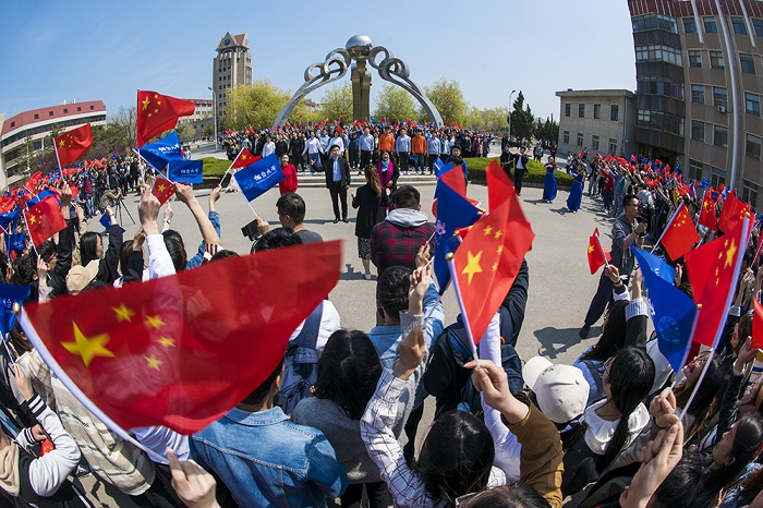 “我和我的祖國(guó),一刻也不能分割……”4月17日中午,升騰廣場(chǎng)傳來(lái)一陣陣悠揚(yáng)的歌聲,煙臺(tái)大學(xué)“我和我的祖國(guó)”快閃視頻拍攝正在這里進(jìn)行。在場(chǎng)師生一同唱響《我和我的祖國(guó)》,訴說(shuō)著對(duì)祖國(guó)的無(wú)限熱忱與依戀,以拳拳赤子之心向祖國(guó)70華誕獻(xiàn)禮,向母校建校35周年獻(xiàn)禮。