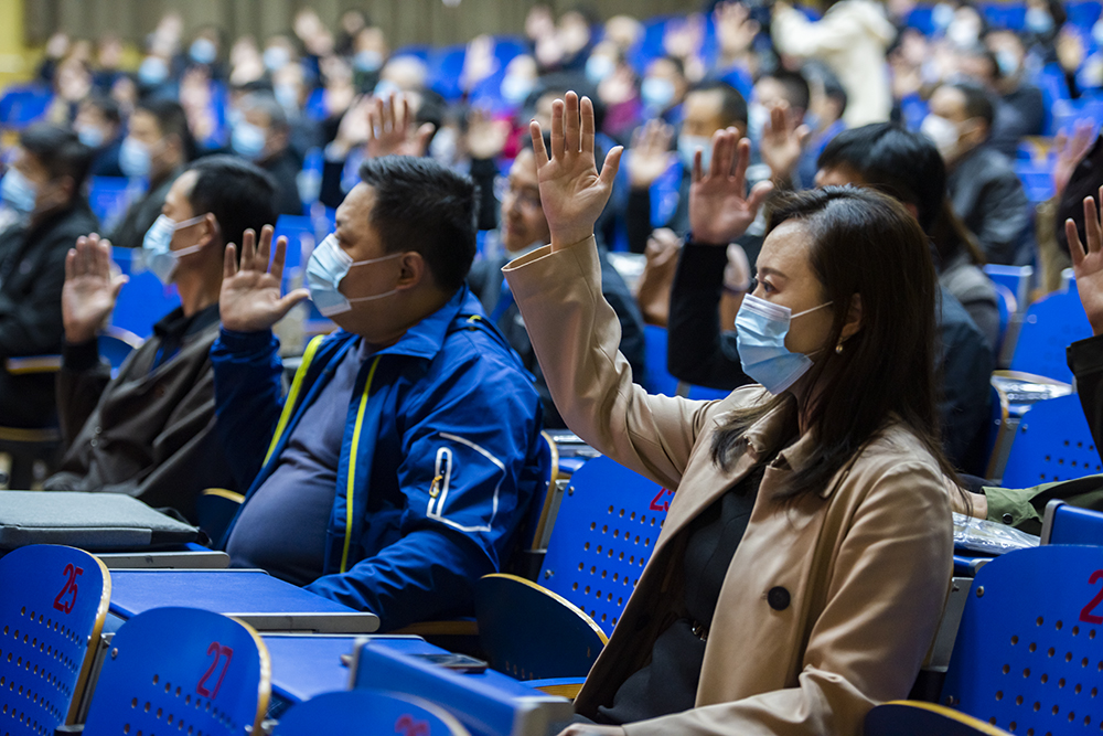 張殿臣在閉幕詞中代表學校黨委對大會的圓滿成功表示熱烈的祝賀。他指出,雙代會圍繞學校工作大局,服務事業發展,在推動學校民主管理、提升教職工獲得感與幸福感等方面做了大量工作,取得了顯著成效;全體代表充分發揮主人翁作用,履職盡責、積極作為,展現了愛校、強校、興校的行動決心。就全面落實好本次大會精神,全力做好各項工作,張殿臣強調:一要匯聚拼搏奮進的強大力量,全面實施“十四五”發展規劃。2021年是“十四五”規劃開局之年、中國共產黨成立100周年。面對良好的內外部發展環境,全校上下要進一步凝聚思想共識,積極整合并充分利用有關資源,為實現學校中長期發展目標不懈努力。要加強對重點任務、重要舉措的統籌安排,確保方向明、重點清、措施實,確保每個重要指標都能實現任務分解、都有具體時間進度,使規劃能夠落實好,持續提升學校綜合實力與核心競爭力。二要深化新時代教育評價改革,推進治理體系和治理能力現代化。教育評價事關教育發展方向,我們要深入貫徹落實中共中央、國務院《深化新時代教育評價改革總體方案》精神和中共山東省委教育工作領導小組辦公室工作清單,以系統性思維全力推進我校教育評價改革13項重點任務,全面落實立德樹人根本任務,堅決破除“五唯”頑瘴痼疾,樹立科學的教育發展觀、人才成長觀、選人用人觀,健全完善學校教育評價制度體系和運行機制,提高學校治理能力和水平,推動學校高質量發展。三要全面推進高水平大學建設,不斷深化內涵發展、提升綜合實力。我們要牢記初心使命,堅持建設特色鮮明、部分學科具有國際影響力的高水平大學辦學目標不動搖,一張藍圖繪到底,確保學校發展建設的一切工作思路和工作舉措都要圍繞這一辦學目標推進實施,持續用力、久久為功。我們要繼續堅持改革創新發展不停步,向改革要動力;要更加彰顯兩校援建和校企合作、產教融合等方面的辦學特色,持續提升服務區域經濟社會發展能力;要扎實推進各項民生工程建設,真正把師生滿意不滿意作為檢驗工作成效的重要標準,讓廣大師生共享學校發展成果。