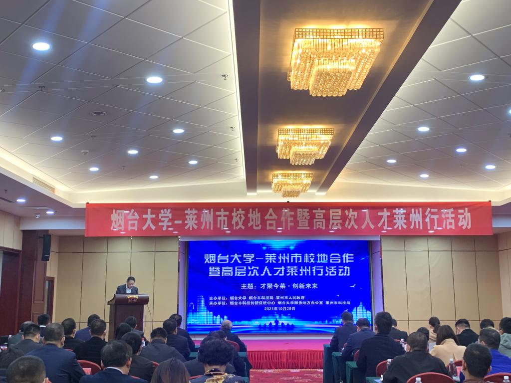 【本站訊】為貫徹落實煙臺市委、市政府關于煙臺市《振興縣(區)域經濟三年行動方案》《煙臺市招商引資攻堅戰實施方案》的精神,充分發揮科技創新在區域經濟發展中的引領和支撐作用,加快提升萊州市自主創新能力,推動校地融合發展,10月29日,由煙臺大學、煙臺市科技局、萊州市人民政府共同主辦,煙臺市科技創新促進中心、煙臺大學服務地方辦公室、萊州市科技局承辦的主題為“才聚今萊·創新未來”的“煙臺大學—萊州市校地合作暨高層次人才萊州行活動”在萊州市成功舉辦。煙臺大學8個學院包含山東省泰山學者青年專家在內的20余名博士高層次人才與萊州市20余家企業進行了對接洽談。中科院蘭州化學物理研究所、煙臺先進材料與綠色制造山東省實驗室相關領導和專家教授,煙臺大學社科(科技)處、服務地方辦公室主要負責人,煙臺市科技局、萊州市有關領導參加活動,會議由萊州市科技局局長方向東主持。