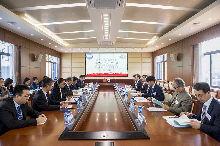 金信圭轉達了木浦大學樸旻緒總長的問候,回顧了兩校間在學生、教師、行政職員交流方面取得的成果,向所有為促進兩校交流默默付出的人員表示了感謝,期待雙方學術交流合作取得豐碩成果。