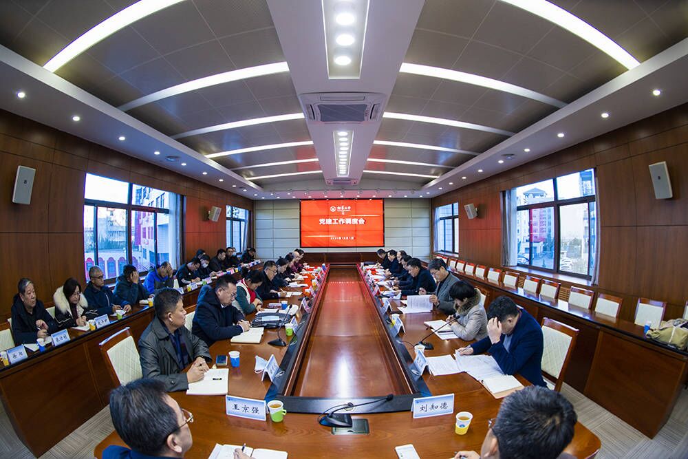 張殿臣指出,今年以來,學校突出抓基層、強基礎,不斷推動黨的建設規范改進、提質增效,組織體系更加嚴密,思想引領堅強有力,基層基礎日益牢固,黨員隊伍活力有效激發,制度體系健全完善,黨建工作特色有所凝練,取得了積極成效。圍繞近期學校黨建與思想政治工作,張殿臣強調,全校各級黨組織要強化思想引領,深化理論武裝,深入學習貫徹黨的十九屆六中全會精神,堅決貫徹落實總書記對山東工作“三個走在前”的重要指示要求,認真學習貫徹省委十一屆十四次全會精神和全省基層黨建工作座談會精神,提升工作標桿,進一步推動黨中央和省委決策部署落地見效。要筑牢基層基礎,強化政治建設,認真落實“第一議題”制度,嚴格黨內組織生活,嚴肅政治紀律和政治規矩,積極組織宣傳凝聚服務廣大師生,進一步增強黨組織政治功能。要堅持以人為本,強化黨員干部和人才隊伍建設,注重發揮黨員先鋒示范崗作用,加大對高層次人才的引育力度,進一步激勵師生員工奮勇爭先。要強化系統觀念,注重黨建融合發展,做到抓黨建和抓業務協同發力,及時應對新形勢下黨建領域出現的新局面新挑戰,積極挖掘總結近年來黨建工作的經驗做法,堅持在整體提升和品牌塑造上下功夫,進一步全面提升學校黨建工作水平。