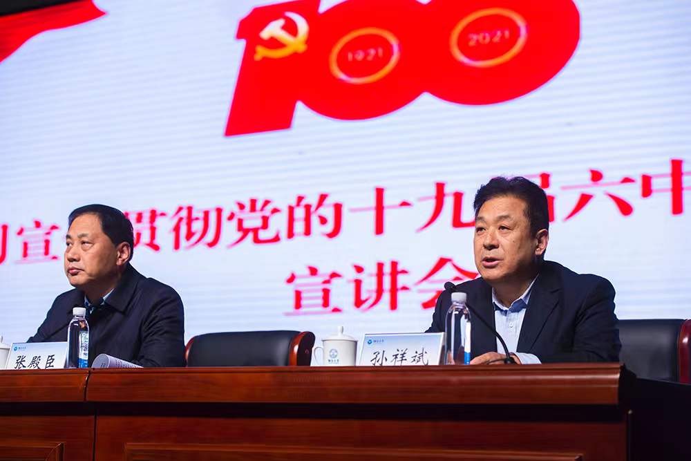 孫祥斌在主持宣講會時就進一步學習貫徹全會精神強調了三點,一要深刻認識黨的十九屆六中全會的重大意義,切實把思想和行動統一到全會精神上來;二要以本次宣講為契機,在全校掀起學習貫徹黨的十九屆六中全會精神的熱潮;三要緊密聯系實際,扎實推進學校各項工作,不斷譜寫學校高質量發展和高水平大學建設的新篇章。