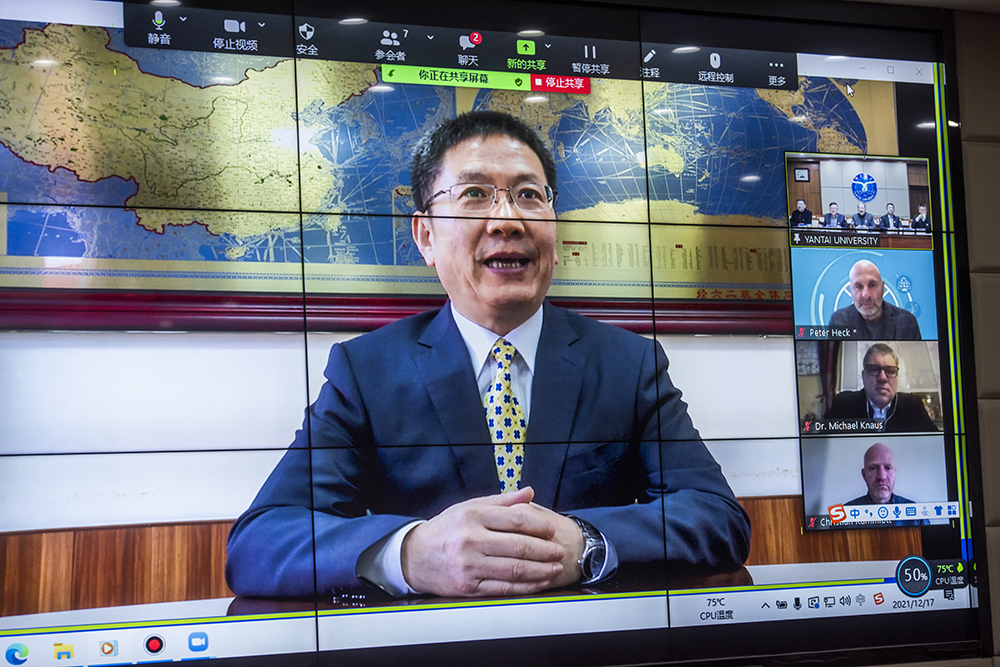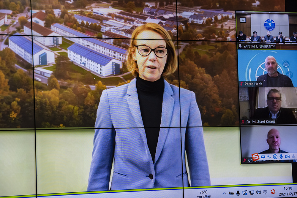 段培永和Schumann在視頻致辭中對(duì)中德特里爾學(xué)院開局階段的教育教學(xué)及運(yùn)行工作給予充分肯定。段培永希望兩校盡力克服新冠肺炎疫情影響,合力謀劃好課程共建、師資配備、學(xué)生聯(lián)合培養(yǎng)等工作細(xì)節(jié),進(jìn)一步論證探討教師學(xué)術(shù)互訪交流、學(xué)生赴德學(xué)習(xí)交流等相關(guān)事宜,將中德特里爾學(xué)院建設(shè)成為中德高水平合作辦學(xué)典范,為全球生態(tài)環(huán)境保護(hù)作出積極貢獻(xiàn)。Schumann表示,千里之行始于足下,希望雙方可以深化交流合作,堅(jiān)定不移地沿著共同的道路前進(jìn),優(yōu)化教學(xué)模式、創(chuàng)新教學(xué)內(nèi)容,以學(xué)生為本,培養(yǎng)高質(zhì)量人才。