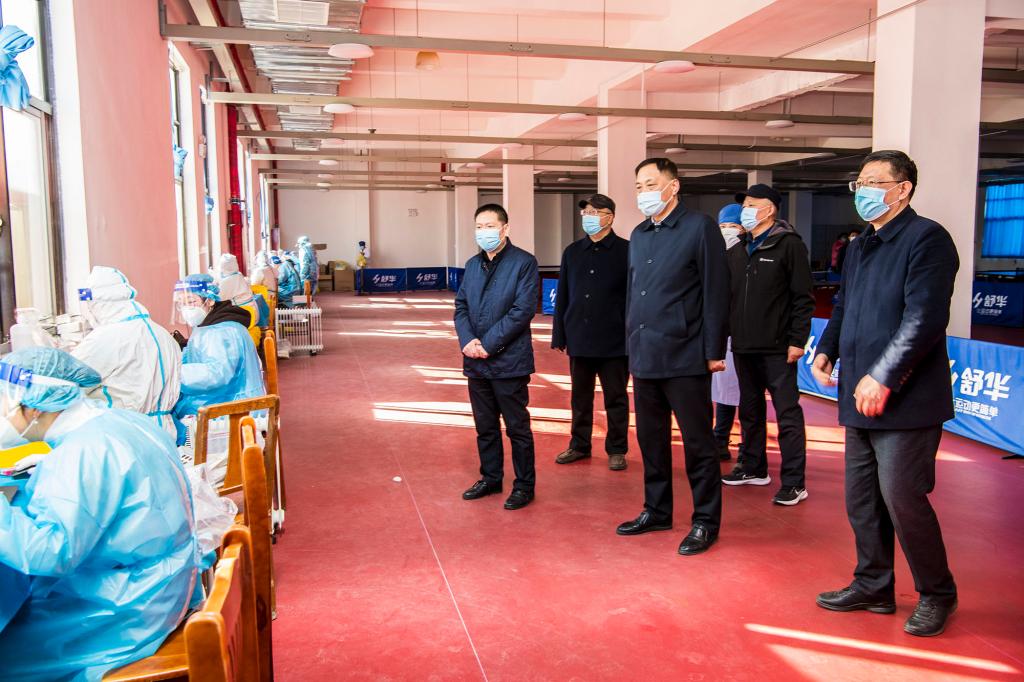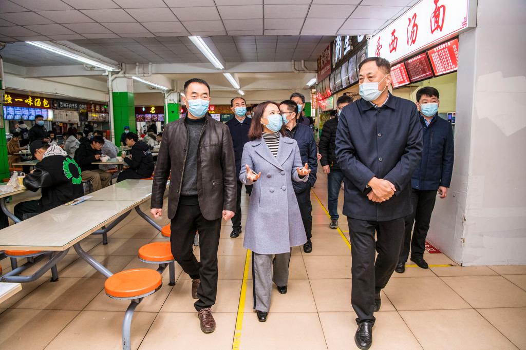 【本站訊】3月6日上午,煙臺大學(xué)黨委書記張殿臣、校長段培永與副校長王強(qiáng)、畢可志深入學(xué)校校門、教學(xué)區(qū)入口、核酸檢測點(diǎn)、校園快遞點(diǎn)、學(xué)生餐廳、學(xué)生公寓以及南校區(qū)相關(guān)地點(diǎn),詳細(xì)督導(dǎo)檢查校園疫情防控工作,全面排查校園疫情防控薄弱環(huán)節(jié)與風(fēng)險隱患點(diǎn),親切慰問參與疫情防控的師生員工,對“從嚴(yán)從緊從實(shí)從細(xì)從快”做好疫情防控各項(xiàng)工作進(jìn)行再部署、再細(xì)化、再強(qiáng)調(diào)。黨委(學(xué)校)辦公室、黨委宣傳部、黨委學(xué)工部、人事處、保衛(wèi)處、后勤管理處、校醫(yī)院等部門主要負(fù)責(zé)人陪同督導(dǎo)檢查。