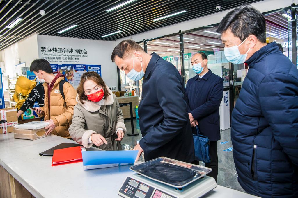 在菜鳥驛站快遞點(diǎn),學(xué)校領(lǐng)導(dǎo)深入貨架區(qū)詳細(xì)查看快遞存放情況,并與有關(guān)負(fù)責(zé)人詳細(xì)了解現(xiàn)場環(huán)境及快遞包裹日常消毒消殺情況,要求快遞點(diǎn)的負(fù)責(zé)人務(wù)必嚴(yán)格執(zhí)行有關(guān)疫情防控要求,對每一件進(jìn)出校園的包裹都要進(jìn)行消毒消殺,對每一個運(yùn)送包裹的員工都要做好健康監(jiān)測、核酸抽檢以及個人防護(hù),對每一輛運(yùn)送包裹的車輛都要進(jìn)行全面消殺并嚴(yán)格管控。