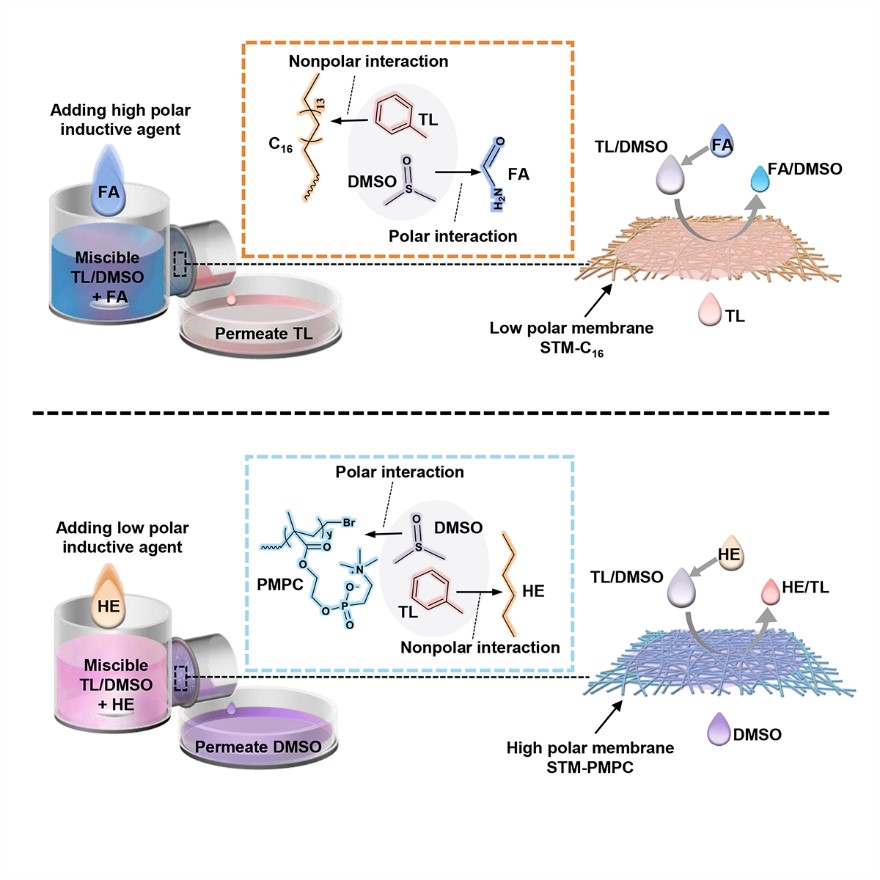 目前,已有的諸多互溶液/液分離技術仍存在分離能耗高、分離通量低或分離過程復雜等問題。近年來,超浸潤分離膜作為一種新興的膜分離技術表現出低分離能耗、高分離通量和簡易的分離操作等優點。然而,現階段的超浸潤分離膜只能實現對不互溶液/液混合體系的分離,對互溶液/液體系的分離仍面臨極大的挑戰。