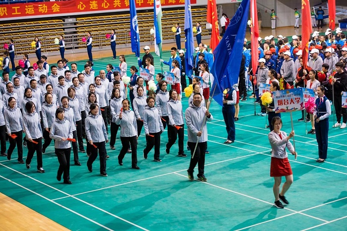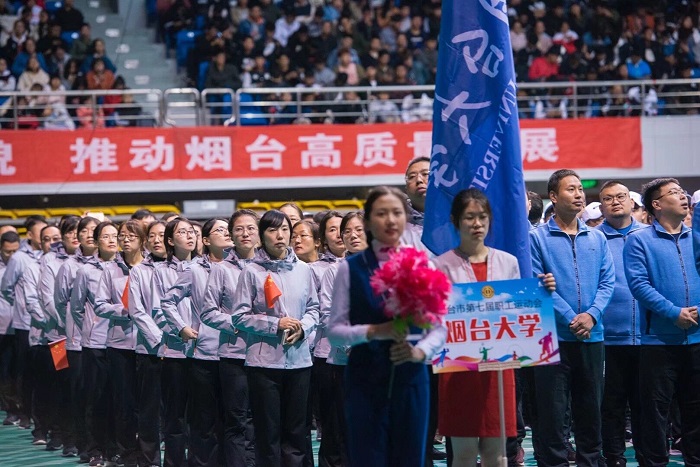 由煙臺市總工會、煙臺市體育局主辦的煙臺市第七屆職工運動會于10月20日在煙臺市體育公園體育館隆重開幕。我校黨委常委、副校長鄧昌亮應邀出席了開幕式。來自全校各單位工會干部五十余人參加了入場方隊。1000名學生現場觀看,廣播體操、啦啦操隊參加了開幕式表演。