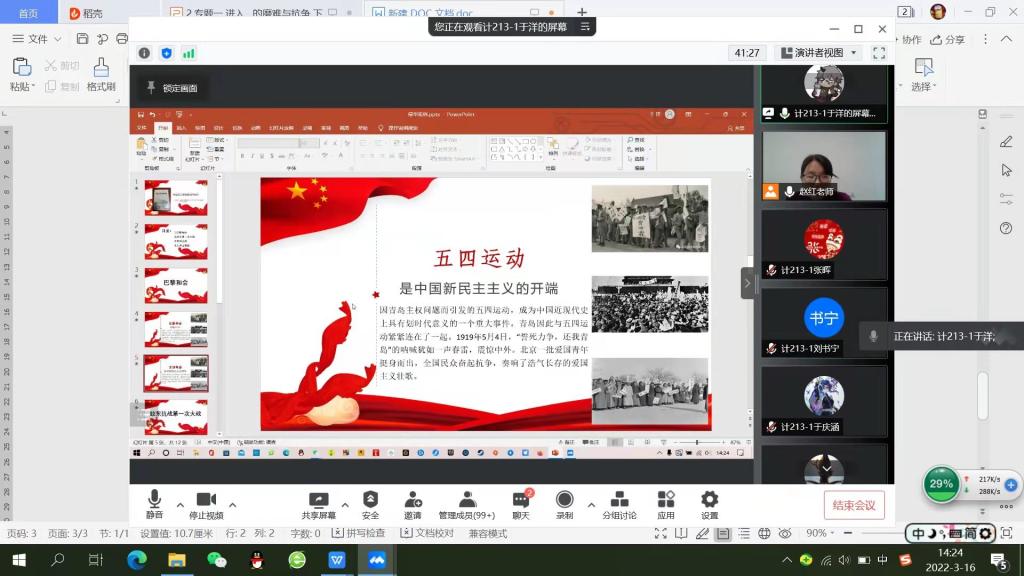 “選擇題、彈幕、投稿這些小工具太實用了,極大地增強了師生的互動性和效率,”馬克思主義學院副教授趙紅老師所講授的課程是《中國近現代史綱要》,在課堂上趙老師通過在線軟件自帶功能加強與學生的交流互動。“課前讓學生‘手勢簽到’,使其提前進入上課狀態,還可以提升學生的活躍度;授課時進行在線‘連麥搶答’互動,考察學生課程學習效果,互動結果納入平時成績,提升學生線上思政課學習熱情。”