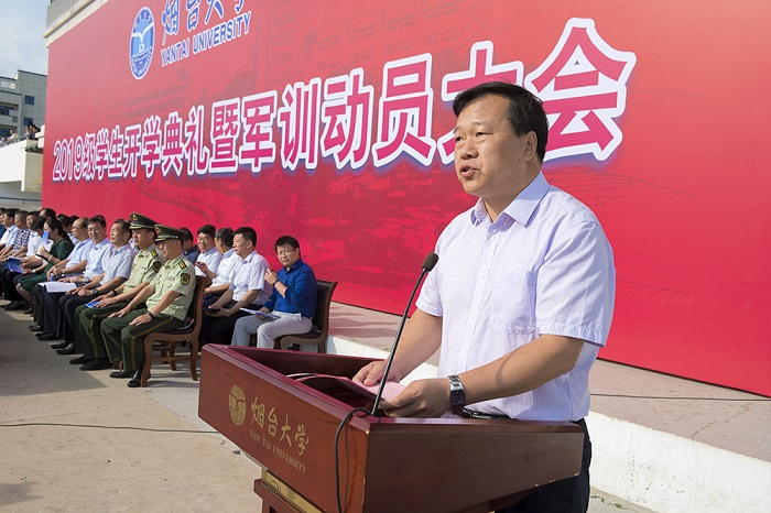 我向海而生,你為夢而來。9月2日上午,煙臺大學2019級學生開學典禮暨軍訓動員大會在體育場舉行。學校領導張偉、郭善利、張殿臣、孫祥斌、鄧昌亮、宋中民、周勝良、郝曙光、李合亮,武警煙臺支隊政委劉忠祥,學院、直屬單位黨政主要負責人,機關各部門主要負責人出席開學典禮。典禮由黨委副書記張殿臣主持。