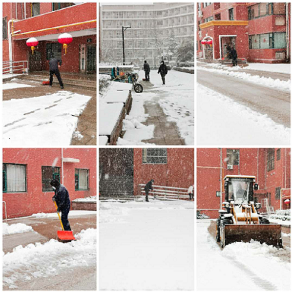 面對疫情防控的嚴峻形勢和近期的惡劣天氣,我校后勤工作人員堅守一線,戰風雪、斗嚴寒,扛起責任和擔當。他們風雪中砥礪前行,以雪為令,及時響應,全線出擊,分秒必爭,全力做好本次降雪的應對工作,確保各項后勤保障工作順利進行。