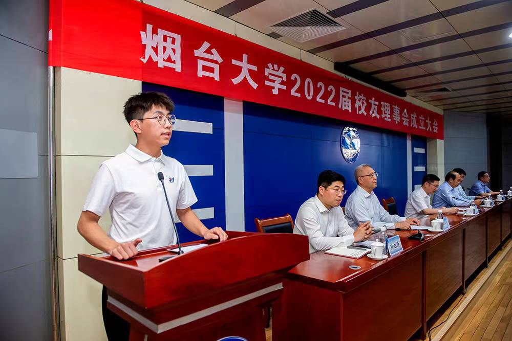 大會(huì)宣讀了《關(guān)于成立煙臺(tái)大學(xué)2022屆校友理事會(huì)的決定》《煙臺(tái)大學(xué)2022屆校友理事會(huì)常務(wù)理事及組織機(jī)構(gòu)人員名單》,與會(huì)老師逐一為每位理事頒發(fā)聘書。2022屆校友理事會(huì)副理事長(zhǎng)、原社團(tuán)聯(lián)合會(huì)主席、機(jī)電汽車工程學(xué)院朱鵬代表全體理事發(fā)言,他表達(dá)了對(duì)母校培養(yǎng)的感激之情,回憶了在煙大學(xué)習(xí)生活的四年時(shí)光,鄭重承諾將認(rèn)真履職盡責(zé),充分發(fā)揚(yáng)煙大精神,積極協(xié)助、配合校友辦和地方校友組織工作,發(fā)揮好橋梁紐帶作用,廣泛聯(lián)絡(luò)、服務(wù)和凝聚校友,力求創(chuàng)新,樂(lè)于奉獻(xiàn),努力將理事會(huì)各項(xiàng)工作落到實(shí)處,不辜負(fù)母校和校友們的信任與期待,努力為校友和母校事業(yè)發(fā)展貢獻(xiàn)力量。