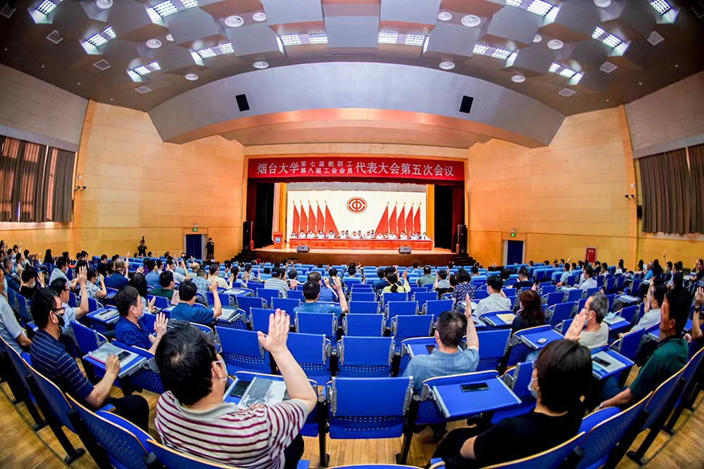 大會表決通過了《煙臺大學專業技術職務(崗位)評聘工作實施辦法(修訂)》《煙臺大學績效工資實施意見(修訂)》《煙臺大學第三聘期崗位設置管理與聘用考核實施意見》《煙臺大學教職工代表大會實施辦法(修訂)》《煙臺大學教職工代表大會提案工作實施辦法(修訂)》《煙臺大學家屬區騰空住房出售方案》和第七屆教代會暨第八屆工代會第五次會議決議。