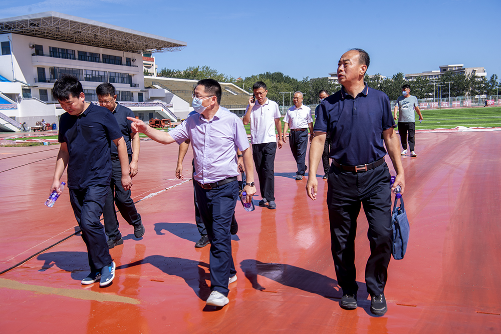 在對正在施工的田徑場的檢查中,段培永強(qiáng)調(diào)一定要在保證質(zhì)量的前提下,加快施工進(jìn)度,確保體育場在新生軍訓(xùn)前完成翻新。