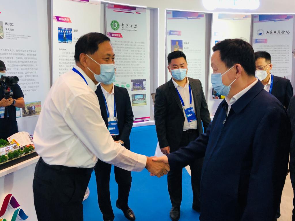 會展活動中,省委副書記、省長周乃翔,省直部門主要領導及煙臺市委市政府主要領導親臨大學生創新創業成果展區巡展并指導工作。張殿臣在雙創周活動交流中表示,學校向來重視大學生創新創業工作,積極響應國家“大眾創業、萬眾創新”的號召,充分發揮北大清華兩校援建優勢,以培養創新型人才為目標,優化專業結構、創新培育機制,大力構建以“互聯網+”“挑戰杯”賽事為龍頭,N項學科競賽為中堅,N項科技創新項目為基礎的“2NN”創新創業育人體系。做實科教融合、產教融合,優化整合校內外創新創業資源,建設有北大清華煙大三校科技園、省級大學生創業園等百余個校內外創新創業平臺,為學生創新創業項目提供全方位、多層次的支持服務,涌現出豐富的科技創新成果。近三年,煙臺大學在全國大學生創新創業類競賽中累計獲得國家級獎勵1200余項、省級獎勵3500余項。除此之外,學校多措并舉在加強教師創新工作方面也取得了一系列代表性成果。例如,計控學院牟春曉團隊的“現代化海洋牧場綜合管理平臺研發及應用”、機電學院郭忠團隊的“自升式海洋石油鉆井平臺桁架樁腿系統的研究與應用”等創新項目助力海洋強省戰略;生科院姜中武團隊自主選育的“煙大一號”蘋果等創新項目助力鄉村振興、校地融合;藥學院分子藥理和藥物評價教育部重點實驗室科研團隊主持研發的創新微球制劑瑞欣妥上市、李小鵬團隊抗腫瘤創新藥物研發等創新項目助力生命健康產業發展。2018年,化院碳四科研團隊專利“用甲乙酮系列混合溶劑分離丁烷與丁烯的方法”榮獲中國專利金獎,打破了國外技術壟斷,每年為企業增值50億元。
