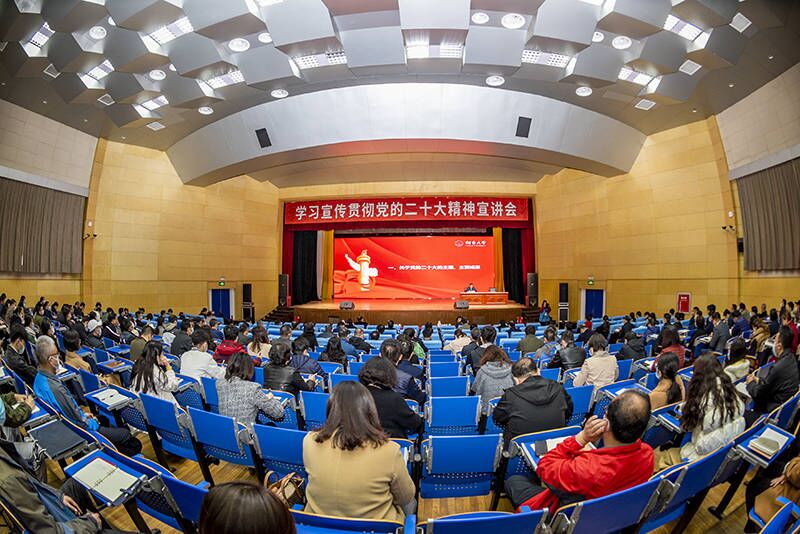 近日,學校印發《中共煙臺大學委員會關于深入學習宣傳貫徹黨的二十大精神的通知》,對全校學習宣傳貫徹黨的二十大精神進行了安排部署、提出了具體要求。黨委理論學習中心組和基層黨組織理論學習中心組把學習黨的二十大精神作為重點內容,制定系統學習計劃,列出專題進行研討。學校成立了由校領導、相關黨委部門負責人、基層黨組織書記、馬克思主義學院理論專家和輔導員骨干組成的宣講團,并于近期面向師生群體開展集中宣講。學校于11月17日至25日面向全校副處級及以上干部舉辦黨的二十大精神專題學習班,采取線上線下自學、專題輔導、集中學習、交流研討等方式進行。全校各基層黨組織通過黨支部“三會一課”、教職工政治理論學習、“當先鋒、做表率”主題實踐活動、主題黨團日活動、主題班會等,利用培訓班、座談會、研討會、報告會等形式精心組織開展黨的二十大精神學習宣傳工作,掀起學習宣傳貫徹黨的二十大精神的熱潮,以實際行動推動黨的二十大精神落地生根、見行見效。
