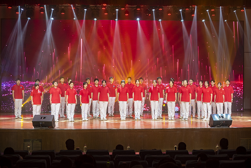 在頒獎典禮上,“石榴籽”團隊代表王嘉琪以《信念,為青春引航》為題講述了煙大團員青年自覺把青春夢融入中國夢,堅定信念、緊跟黨走的決心與信心;舞劇《地雷戰(zhàn)》深情謳歌了中華兒女在中國共產(chǎn)黨領(lǐng)導下的不屈斗志和家國情懷;舞蹈《有我》激勵廣大團員青年要勇于做走在時代前列的奮進者、開拓者、奉獻者;“肯奮斗”榜樣代表高澤宇的演講《奮斗,讓青春無悔》,生動講述了自己將專業(yè)所學與奮斗熱情融入高水平大學建設(shè)進程的經(jīng)歷,勉勵同學們爭當偉大理想的追夢人,爭做偉大事業(yè)的生力軍;2022年新發(fā)展團員代表通過集體宣誓的方式,表達出團員青年勇挑重擔、堪當大任的決心和信心;朗誦《就是那一抹紅》引導廣大團員青年要始終以黨的旗幟為旗幟、以黨的意志為意志、以黨的使命為使命,把青春奮斗融入黨和人民的事業(yè)中;視頻《青年志愿者》致敬全體煙大青年,他們用無數(shù)份小愛成就大愛,用愛心關(guān)懷世界,用行動溫暖人心;合唱《中國青年》歌頌了中國青年欣欣向榮、踔厲奮發(fā)的時代風貌。