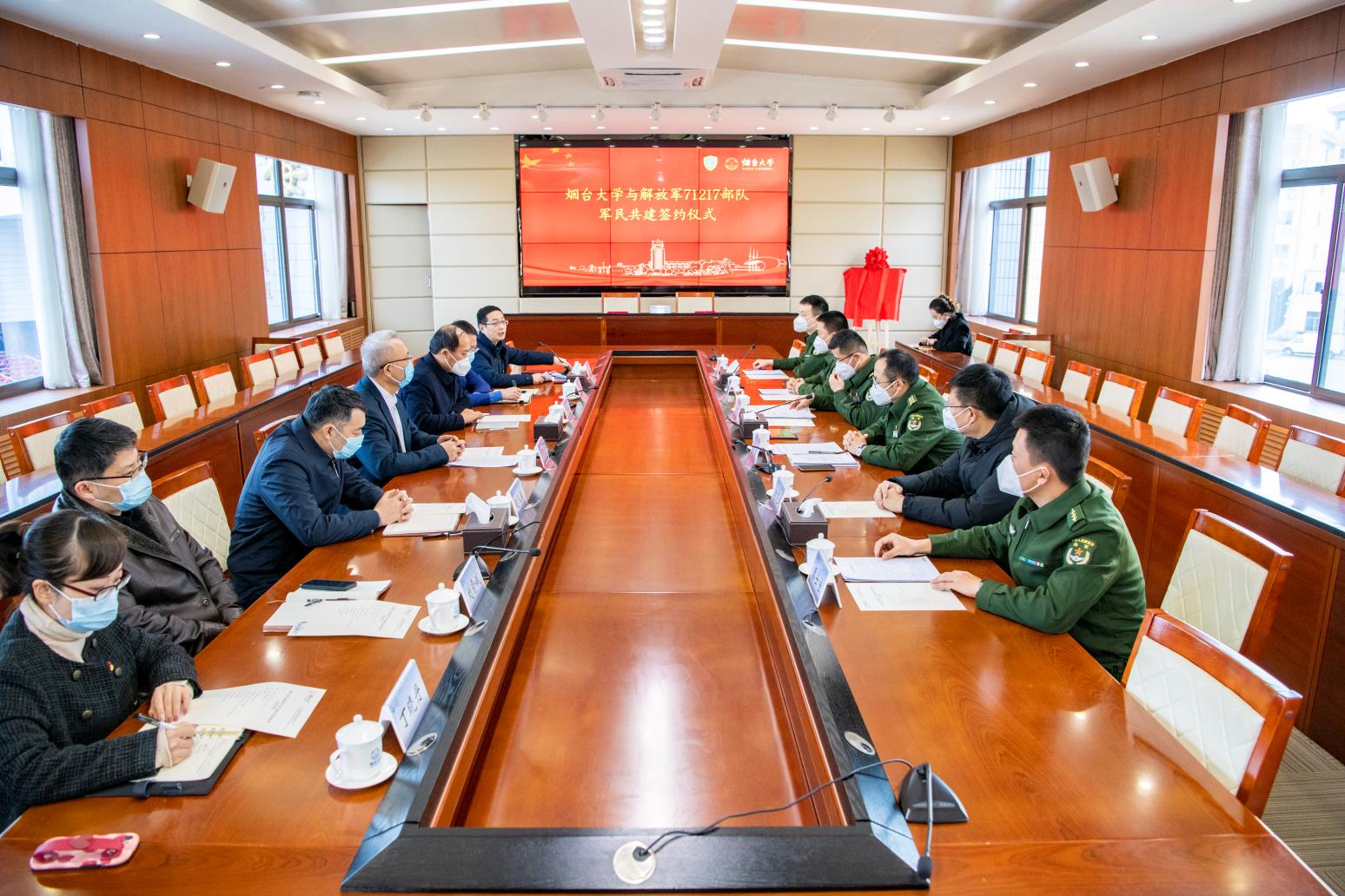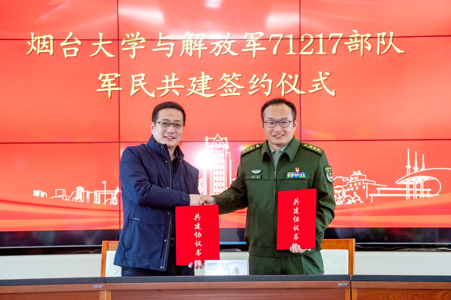【本站訊】為推動軍民共建社會主義精神文明活動深入開展,進一步構(gòu)建和諧的軍民關(guān)系,鞏固和發(fā)展軍政軍民團結(jié),12月16日上午,煙臺大學與解放軍71217部隊成功結(jié)對,并簽訂共建共育協(xié)議。解放軍71217部隊政治工作部上校主任孔勇、政治工作部中校副主任孫寶山、68分隊中校營長李洞元、煙臺市退役軍人事務局副局長劉克誠,煙臺大學黨委常委、副校長畢可志,黨委常委、宣傳部部長于秀國出席儀式。