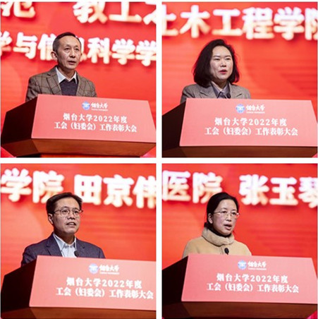 大會在莊嚴的國歌聲中開幕。會議對2022年度“全省教育系統模范職工小家”“山東省教育系統勞模和優秀人才創新工作室”“齊魯巾幗科技創新之星”“山東省教育系統女職工建功立業標兵崗”“山東省教育系統女職工建功立業標兵”,煙臺大學“模范教工之家”“優秀工會工作者”“三八紅旗集體”“三八紅旗手”“教工先鋒號”“最美家庭”“工會積極分子”等獲獎集體和個人進行表彰。模范“教工之家”代表王虔祖、“三八紅旗手”代表張勁、“教工先鋒號”代表田京偉、“最美家庭”代表張玉琴分別發言。