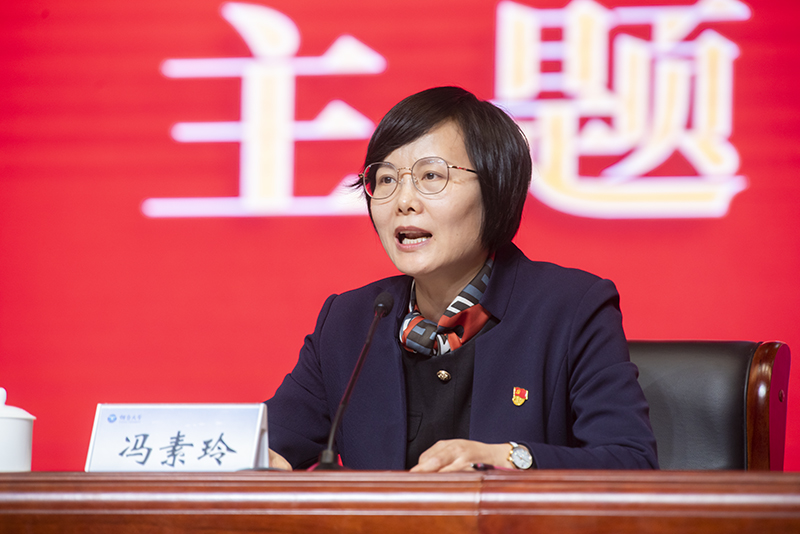 馮素玲在講話中指出,“奮斗、擔當”是這次主題教育的關鍵詞,奮斗擔當是新時代的重托,是煙大人的光榮傳統,是成就大我的正確選擇,要深刻理解其中蘊含的時代價值和深遠意義。她表示,同學們生逢盛世、重任在肩,要緊跟時代學,加強思想淬煉,以主題教育為契機,立志做馬克思主義的忠誠信奉者、堅定實踐者,在理性認同科學理論、正確認識歷史規律、準確把握基本國情的基礎上,筑牢理想信念的根基;要肩負使命學,厚植家國情懷,以實際行動詮釋忠誠與擔當,努力成長為實現中華民族偉大復興賽道上的青春支柱、青春棟梁;要帶著問題學,實現知行合一,在學習實踐的過程中,堅持以問題為導向,以解決問題為出發點和著力點,努力做到知行合一、以知促行、以行求知。她寄語同學們,要牢記習近平總書記的囑托,堅持用科學理論武裝頭腦,向英雄學習、向前輩學習、向榜樣學習,把愛國情、強國志、報國行自覺融入建設社會主義現代化強國、實現中華民族偉大復興的奮斗之中,努力做德智體美勞全面發展的社會主義建設者和接班人。馮素玲強調,開展主題教育是加強思想政治教育的重要載體,高標準、高質量開展好主題教育是提升思想政治教育針對性、感染力的有效手段。要切實增強責任感和緊迫感,思想上高度重視、行動上迅速跟進、措施上務求實效。