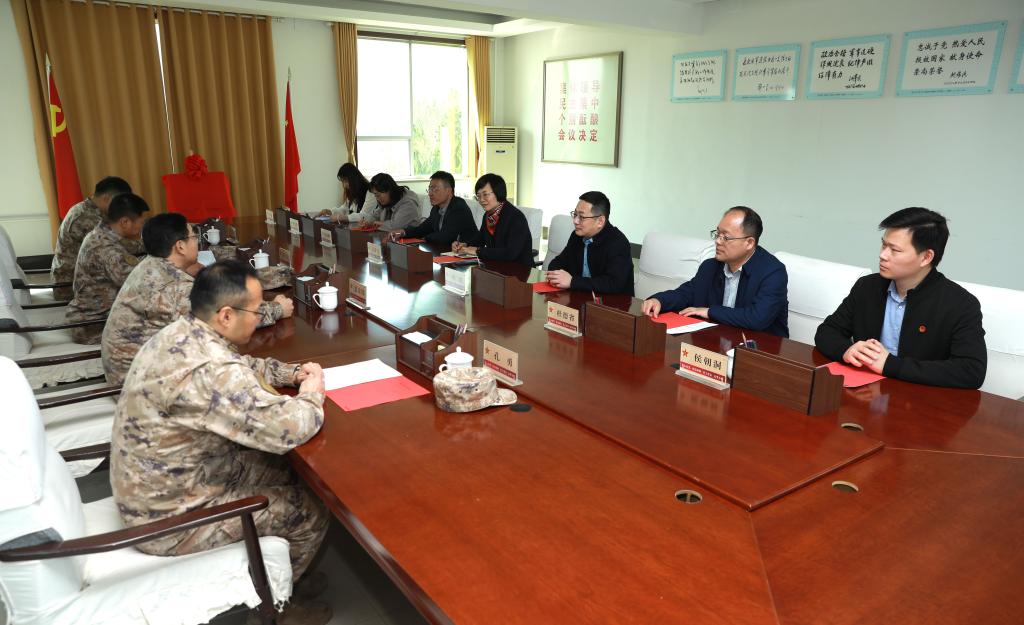 座談中,馮素玲代表學校向部隊官兵致以親切的問候,對精心籌備此次共建活動的部隊同志表示由衷的感謝,并圍繞下一步如何推動共建共育工作走深走實同部隊領導交換了意見。隨后,雙方領導共同為“全國大學生社會實踐基地”揭牌。在部隊首長和政委的陪同下,馮素玲一行參觀了旅史館、榮譽室,詳細了解了解放軍71217部隊的光榮歷史;深入士兵宿舍、食堂及活動場所,觀看軍事課目展示,感受軍人嚴謹務實的生活態度和精益求精的工作作風;參觀了先進的武器裝備,感受國防和軍隊現代化的豐碩成果。