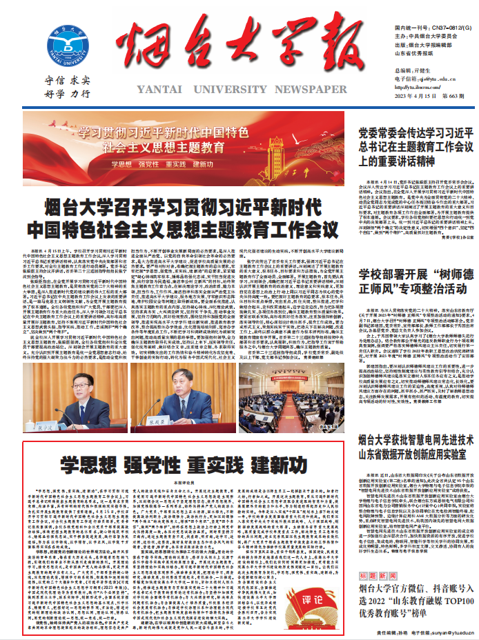 重實踐,把思想轉化為推動工作的強大力量。理論的價值在于指導實踐,理論的說服力、感召力從根本上說源于在科學指導實踐中展現的真理力量。開展這次主題教育,要堅持理論和實踐相結合,用習近平新時代中國特色社會主義思想改造客觀世界、推動事業發展,把理論學習、調查研究、推動發展、檢視整改貫通起來,有機融合、一體推進。要錨定加快建設高水平大學這一目標,緊扣立德樹人根本任務,將推進主題教育與貫徹落實黨的二十大精神和習近平總書記關于教育的重要論述有機融合;與堅持和加強黨對學校的全面領導有機融合;與大興調查研究,解決難點問題有機融合;與全面提高人才培養質量,積極服務經濟社會發展有機融合;與推進學校治理體系和治理能力現代化有機融合,把主題教育煥發出的熱情和干勁轉化為推進中國式現代化和社會主義現代化強省建設的煙大實踐。