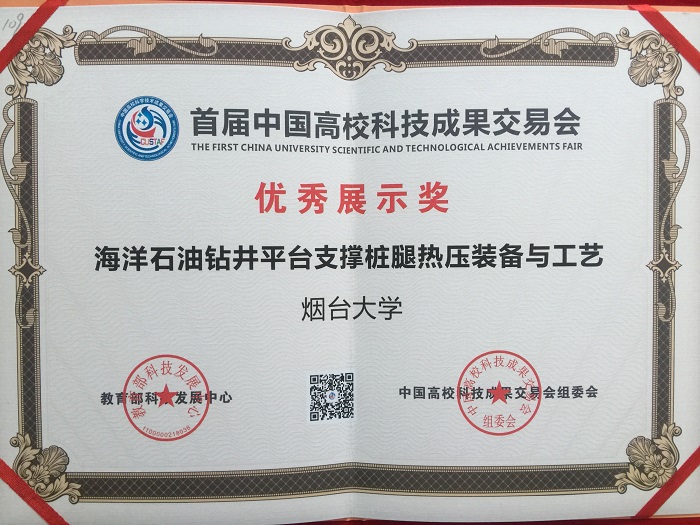 會議期間,我校路演項目《阻燃性汽車內飾革的研發及產業化》《碳四分離與綜合利用技術》得到了與會專家和相關企業的一致認可,近10家企業與投資機構現場表示要進行深入探討與合作;有近30家企業對我校的11項科技成果達成了初步合作意向,惠州市美思奇發展有限公司與我校簽訂了合作協議。同時,《阻燃性汽車內飾革的研發及產業化》被教育部科技發展中心評為最佳路演獎,《海洋石油鉆井平臺支撐樁腿熱壓裝備與工藝》被評為優秀展示獎。
